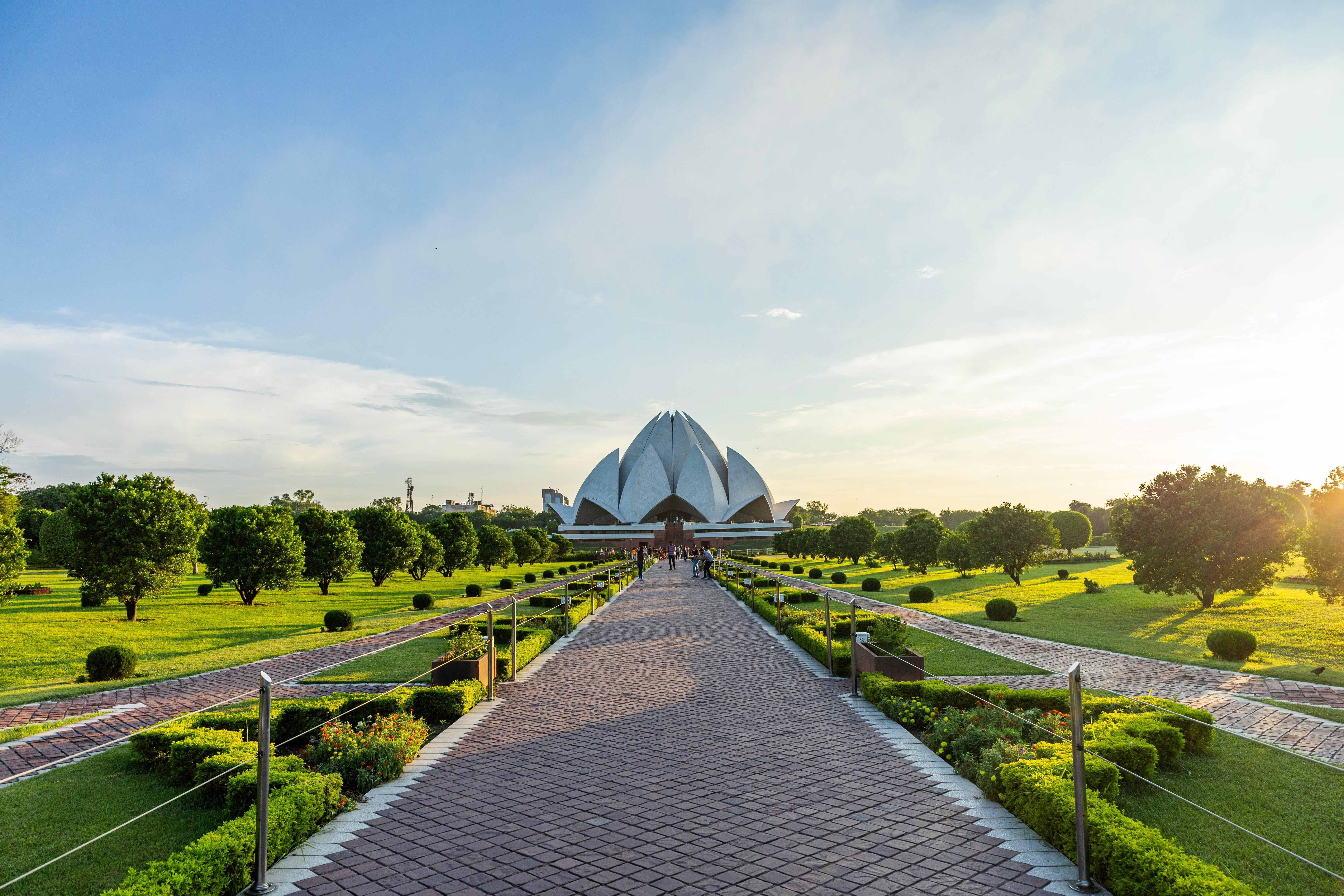 Der 1986 eröffnete Tempel wurde in Form einer riesigen Lotusblüte errichtet, die sich 40 Meter hoch in den Himmel reckt. Die weiße Fassade besteht aus griechischem Marmor.
