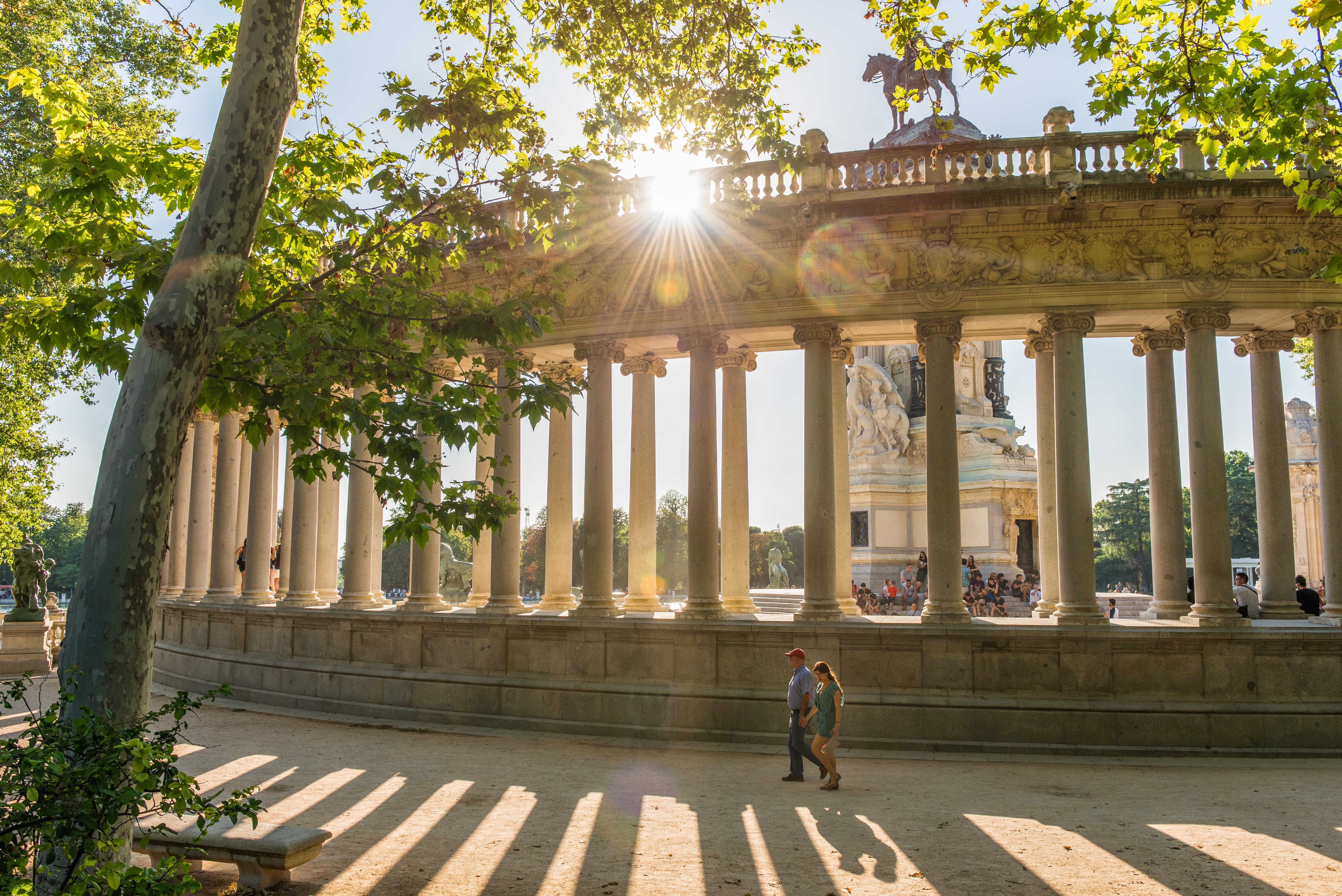 Seit 1868 steht der ehemalige Königsgarten allen Madrilenen offen. Die weitläufige „grüne Lunge“ der Stadt ähnelt dem New Yorker Central Park. Hier trifft man sich zum Picknicken und Sonnenbaden, rudert auf dem künstlich angelegten See oder schlendert durch den Rosengarten an der Puerta de Alcalá.