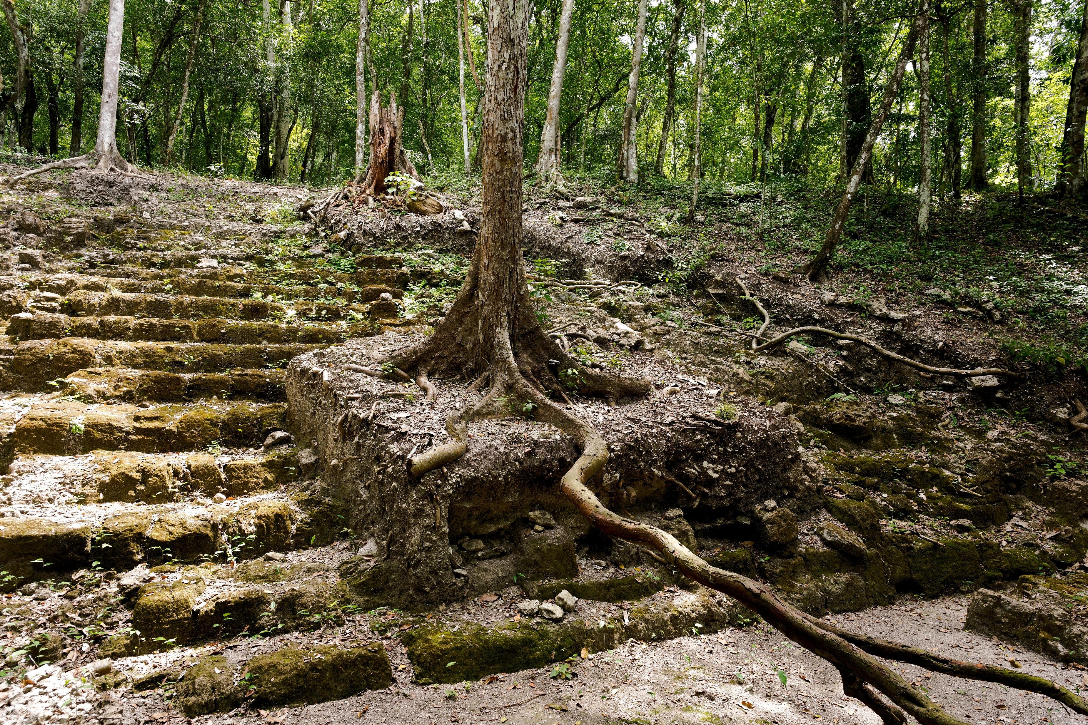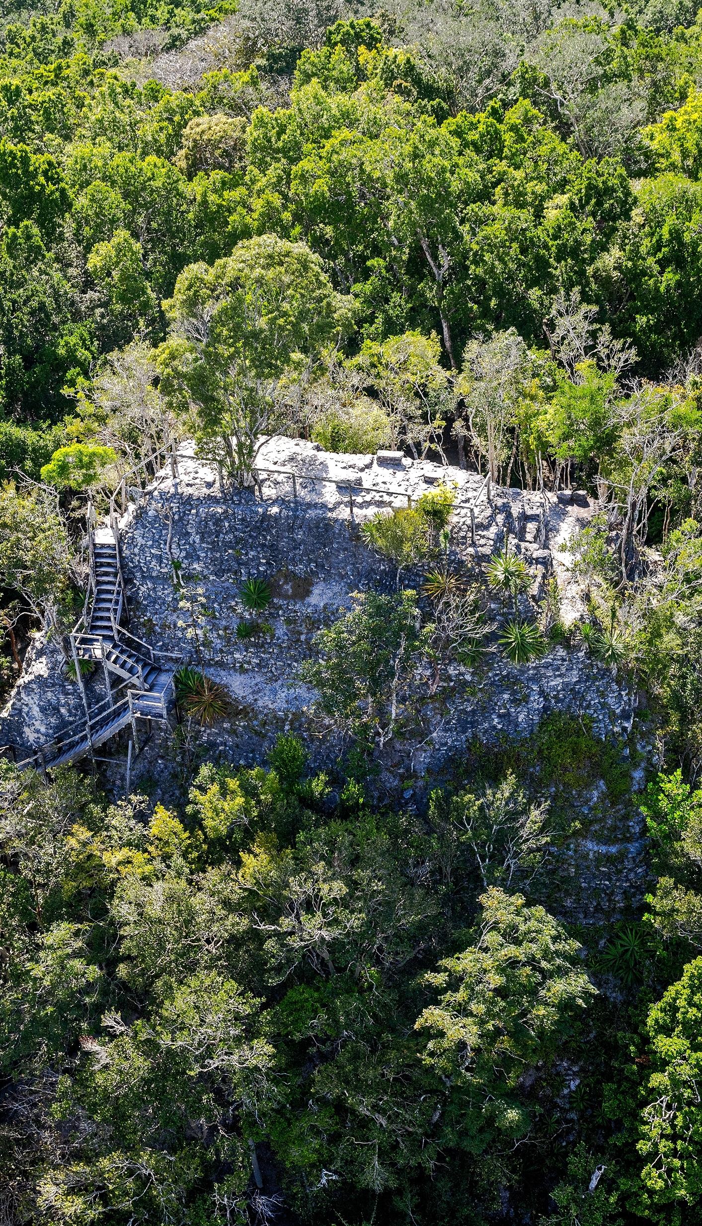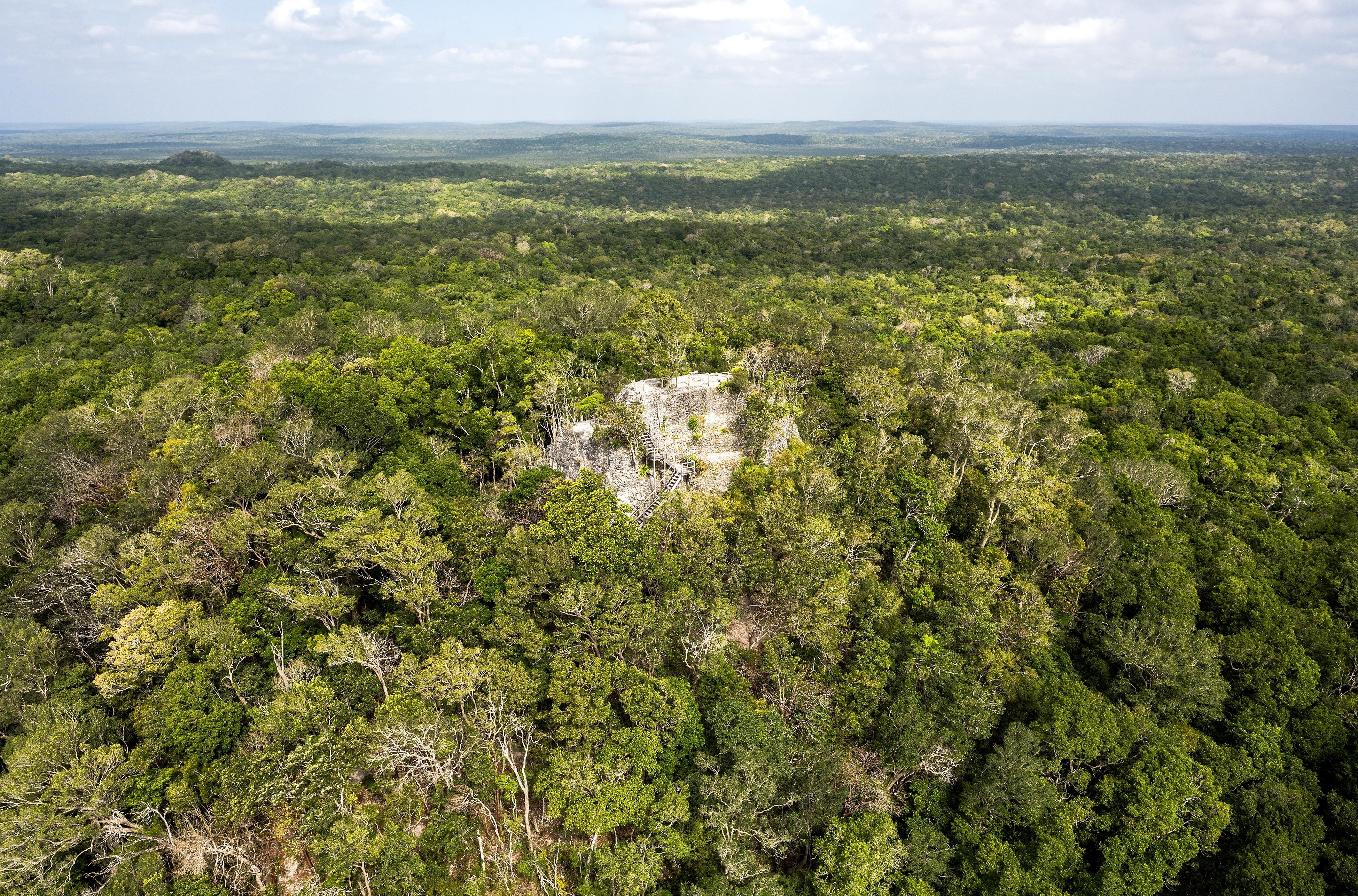 Irgendwo im Norden liegt hinter der unsichtbaren Grenze zu Mexiko die Maya-Stadt Calakmul. Sie ist an klaren Tagen mit einem Teleskop oder einem guten Fernglas zu sehen. Zwischen den Baumwipfeln lassen sich weitere Unebenheiten in der Landschaft erkennen - auch das sind Ruinen. Mehr als 80 Städte und Siedlungen haben in der näheren Umgebung gelegen, die allesamt über das ausgeklügelte Straßennetz mit der Hauptstadt El Mirador verbunden waren.
