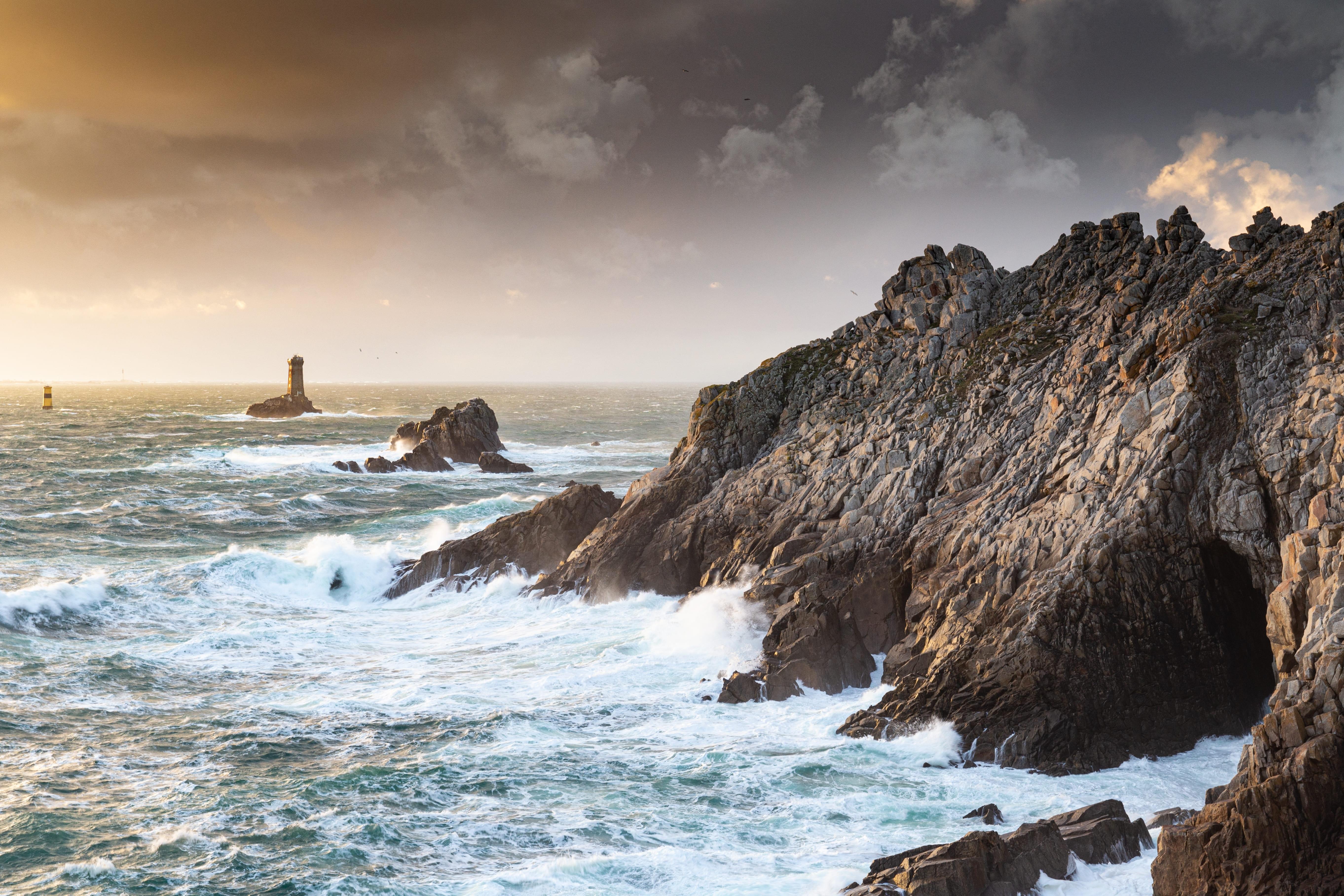 Perfekte Spots gibt es reichlich, etwa in der Baie des Trépassés am Cap Sizun oder der Plage de Goulien auf der Halbinsel Crozon. La Torche gilt jedoch als absolutes Highlight; regelmäßig pilgert die Funsportgemeinde zu internationalen Wettkämpfen an den Dünenstrand. Anfänger sollten aber besser in ruhigerer See aufs Brett steigen, warnt Thomas Joncour, der in der Nachbarbucht die Surfschule "29 Hood" betreibt. "Die extreme Strömung ist hier an vielen Stellen lebensgefährlich." Wie tückisch die raue, zerklüftete Küste von Finistère daherkommt, zeigt sich unter Wasser: Der Meeresgrund ist gespickt mit Riffen und Hunderten von Schiffswracks - ein Paradies auch für Taucher (wegen der Strömung nie ohne Guide). 1978 zerschellte hier im Sturm der Ölriese Amoco Cadiz. Kein Wunder also, dass die Gegend mit Leuchttürmen gepflastert ist.