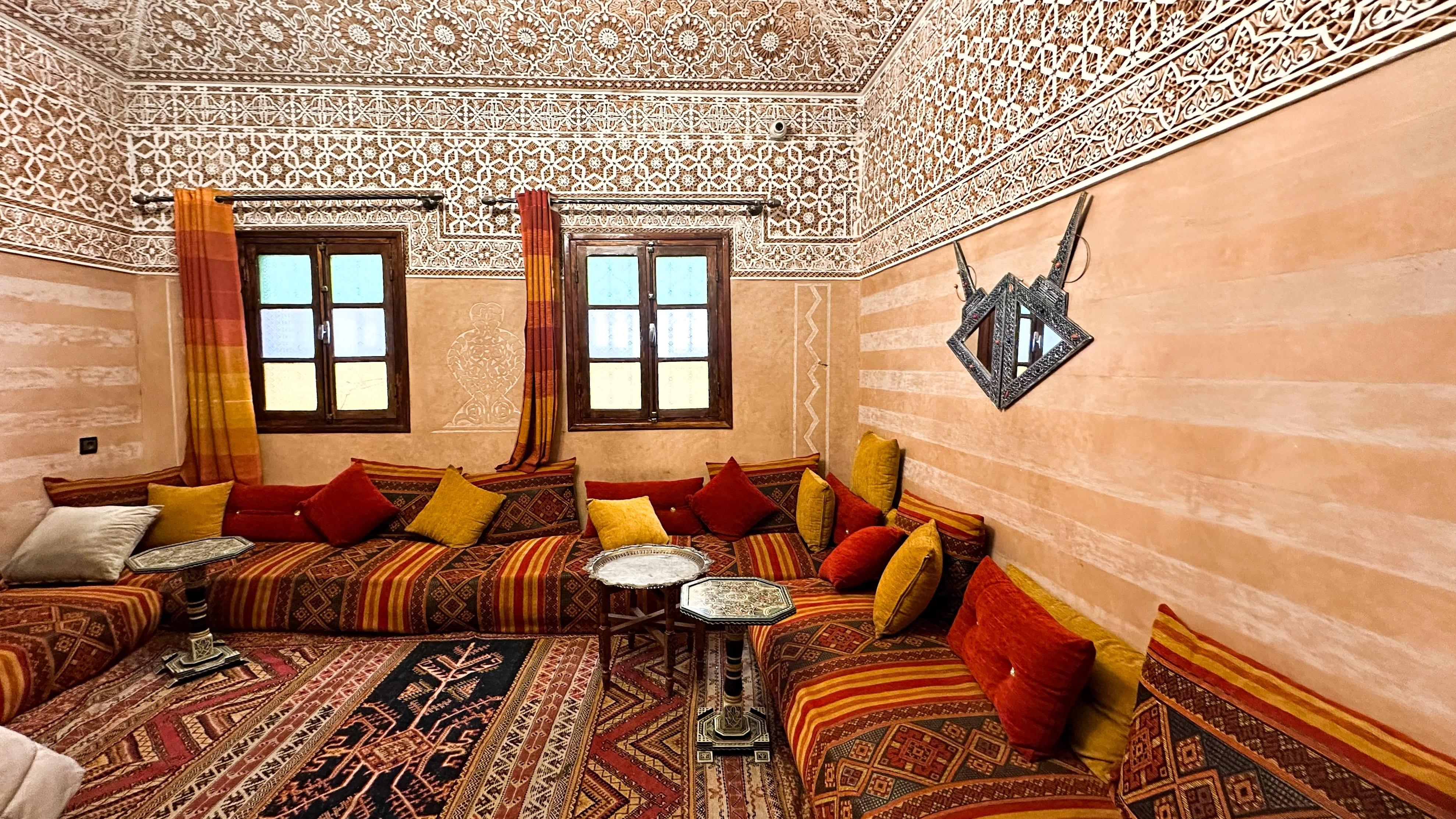 In diesem 300 Jahre alten Riad östlich des Djemaa el-Fna sind die Zimmer so groß, dass ganze Familien in ihnen urlauben können. Der Besitzer organisiert regelmäßig Workshops zu so unterschiedlichen Themen wie marokkanischer Bauchtanz oder Sufismus sowie Impromptu-Konzerte, bei denen berühmte Opernsänger auftreten.